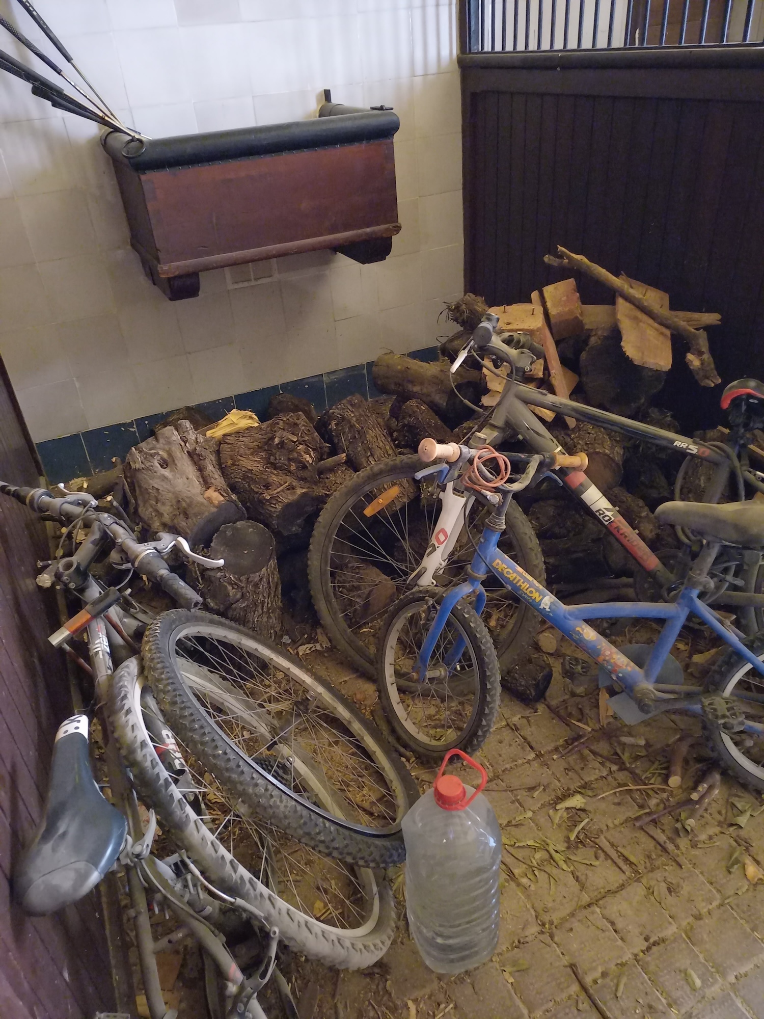 En la audioguía te informan que las caballerizas, son las mejor conservadas de Sevilla, junto con las de la Casa de las Dueñas. Así lo considera también Teodoro Falcón en su libro "Casas Sevillanas". Pues bien, con el anuncio previo de su importancia, es más doloroso aún encontrarte con partes de ellas convertidas en leñera, en almacén de bicicletas llenas de polvo, o de electrodomésticos viejos o de cajas de cartón, como mostramos en las fotos que hicimos. ¿No hay ningún otro sitio para guardar estos chismes en los más de 3.000 m2 que ocupa la casa? Pues si no lo hay o no los quieren llevar a otro sitio que, al menos, no muestren este espacio al visitante porque la imagen que dan es de abandono, de dejadez.