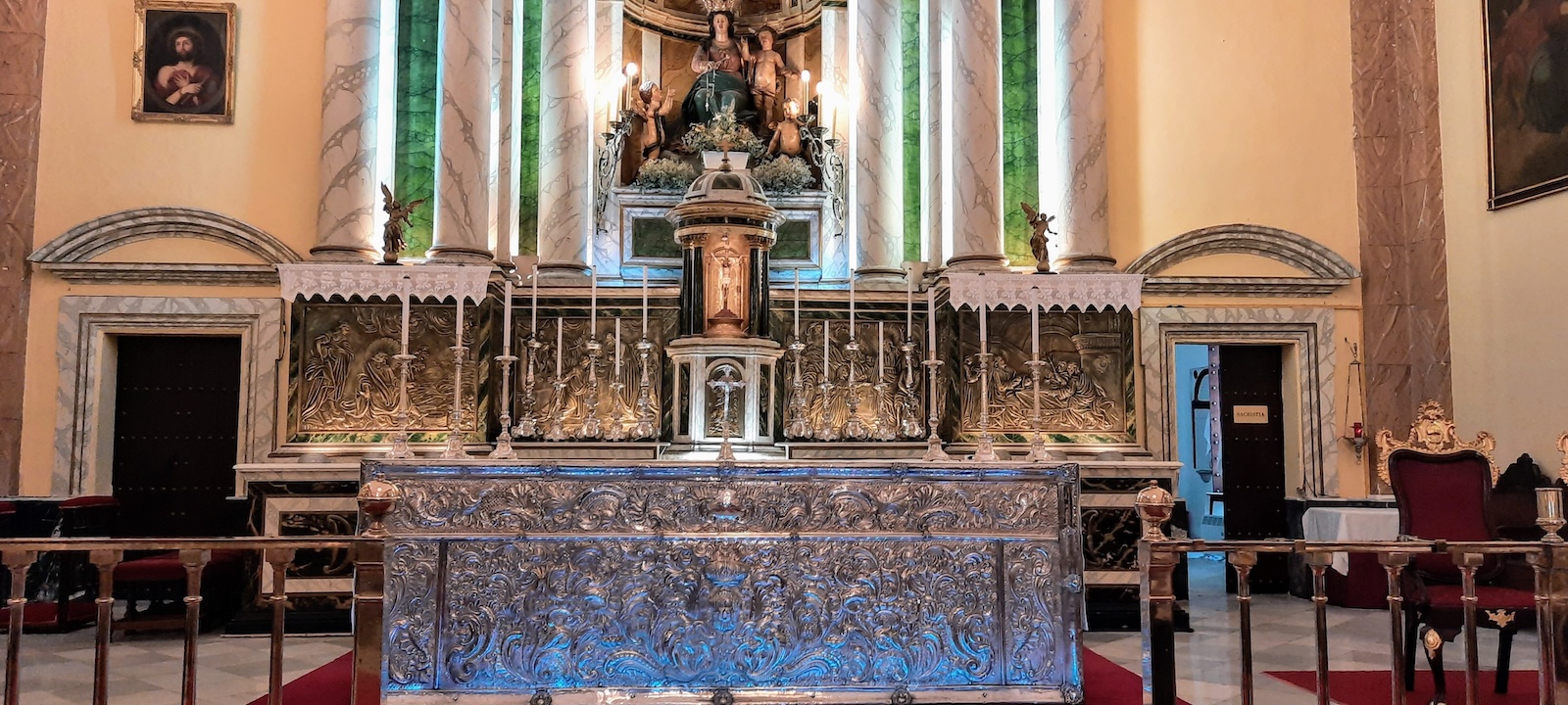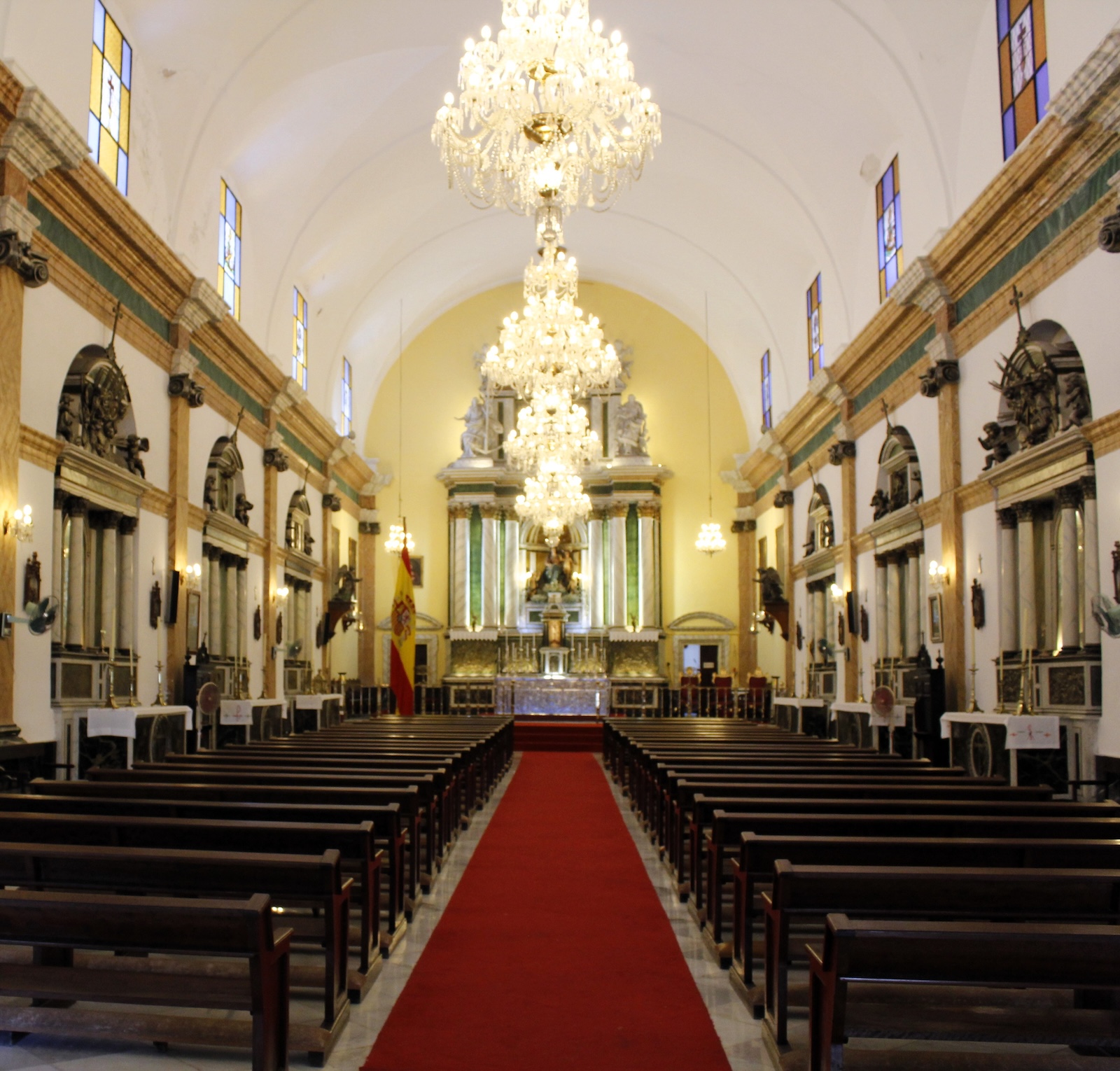 Estaremos de acuerdo que todo lo detallado con anterioridad otorga singularidad al enclave, pero, independientemente del gusto por lo neoclásico de cada uno, para reforzar aún más su singularidad, te encuentras con una iglesia de proporciones y decoración sorprendentes, tratándose del templo de una base militar, con su altar de plata donado por la familia genovesa del cardenal Spínola y con sus cinco lámparas de araña de cristal de la Real Fábrica de La Granja de San Ildefonso.